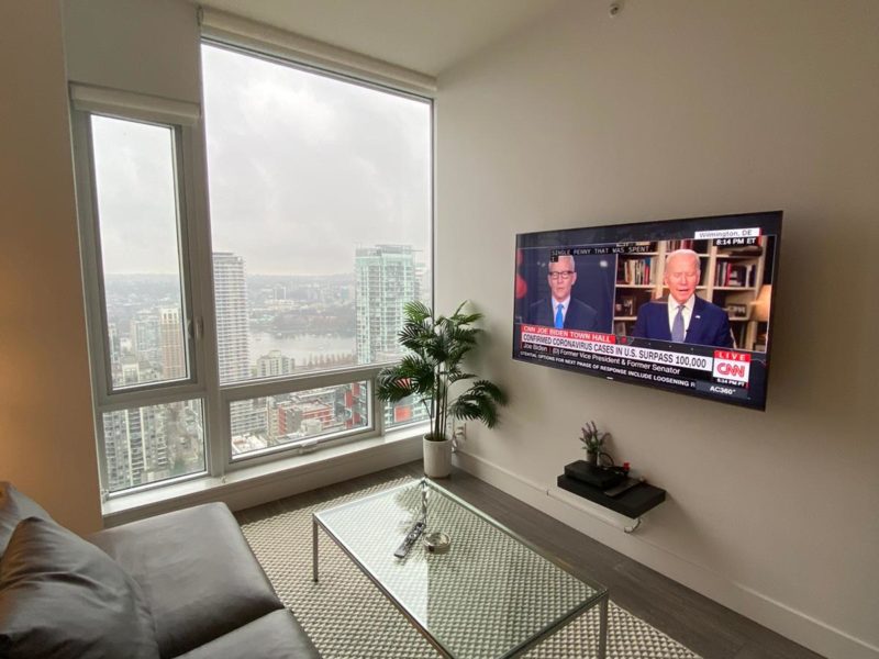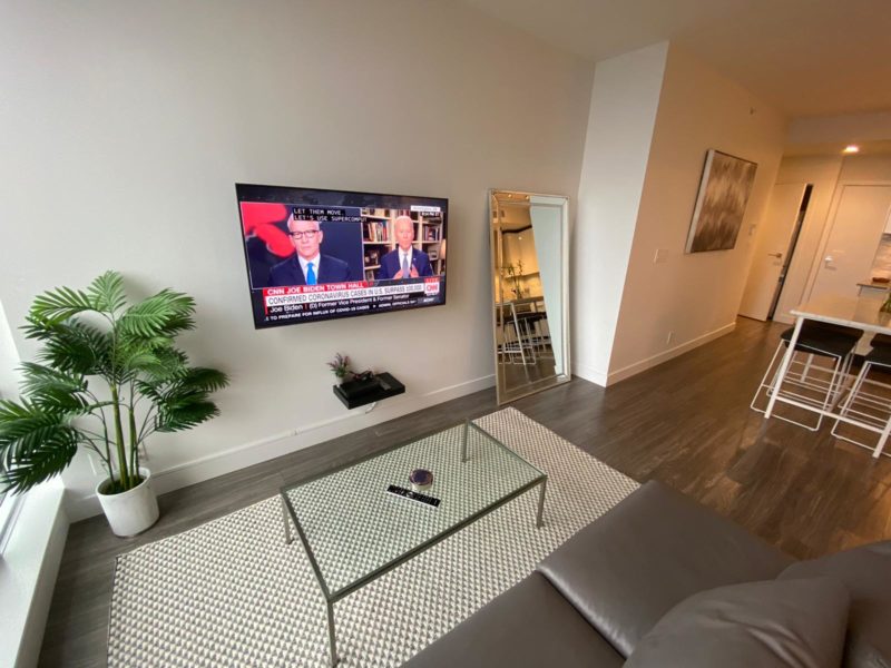 The unfurnished unit includes a new high-end flat-screen TV, cable and internet.