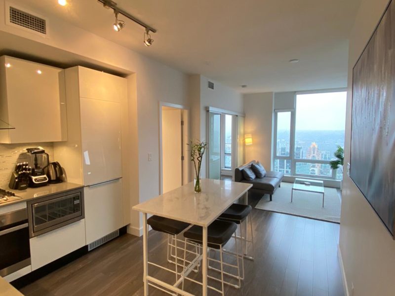 Modern and minimalist with views that can't be beaten. This 1 bedroom / 1 bathroom plus Den - luxury condo located in the desirable TATE building is one of Yaletown's finest and best suited to the executive renter that is looking for a destination rental to merge design, sophistication, and functionality all into one. An open living & dining area boasts high ceilings, luxury finishings, engineered hardwood and European stainless appliances making this contemporary space a renters dream. The entrance hosts a large walk-in closet cum office/den space that would take care of storage needs while the well-appointed living space remains bathed in light from the floor to ceiling windows. Lavish bathroom, a well-planned bedroom and private deck space that offers panoramic and unobstructed views of the city will have you feeling at home in no time.