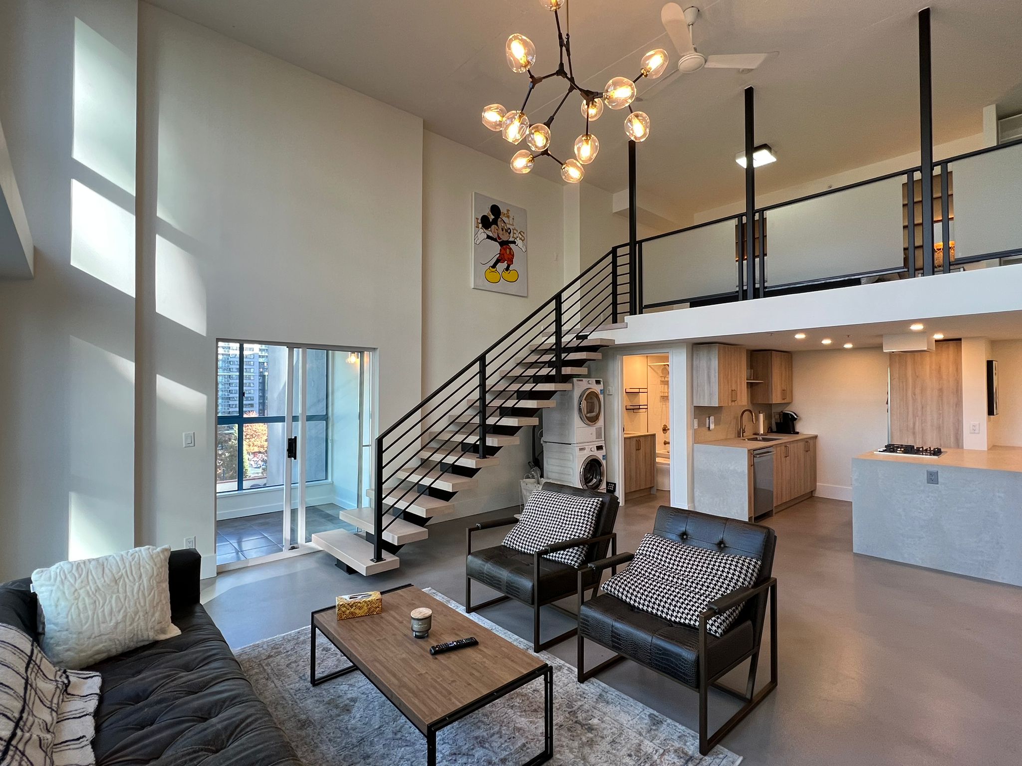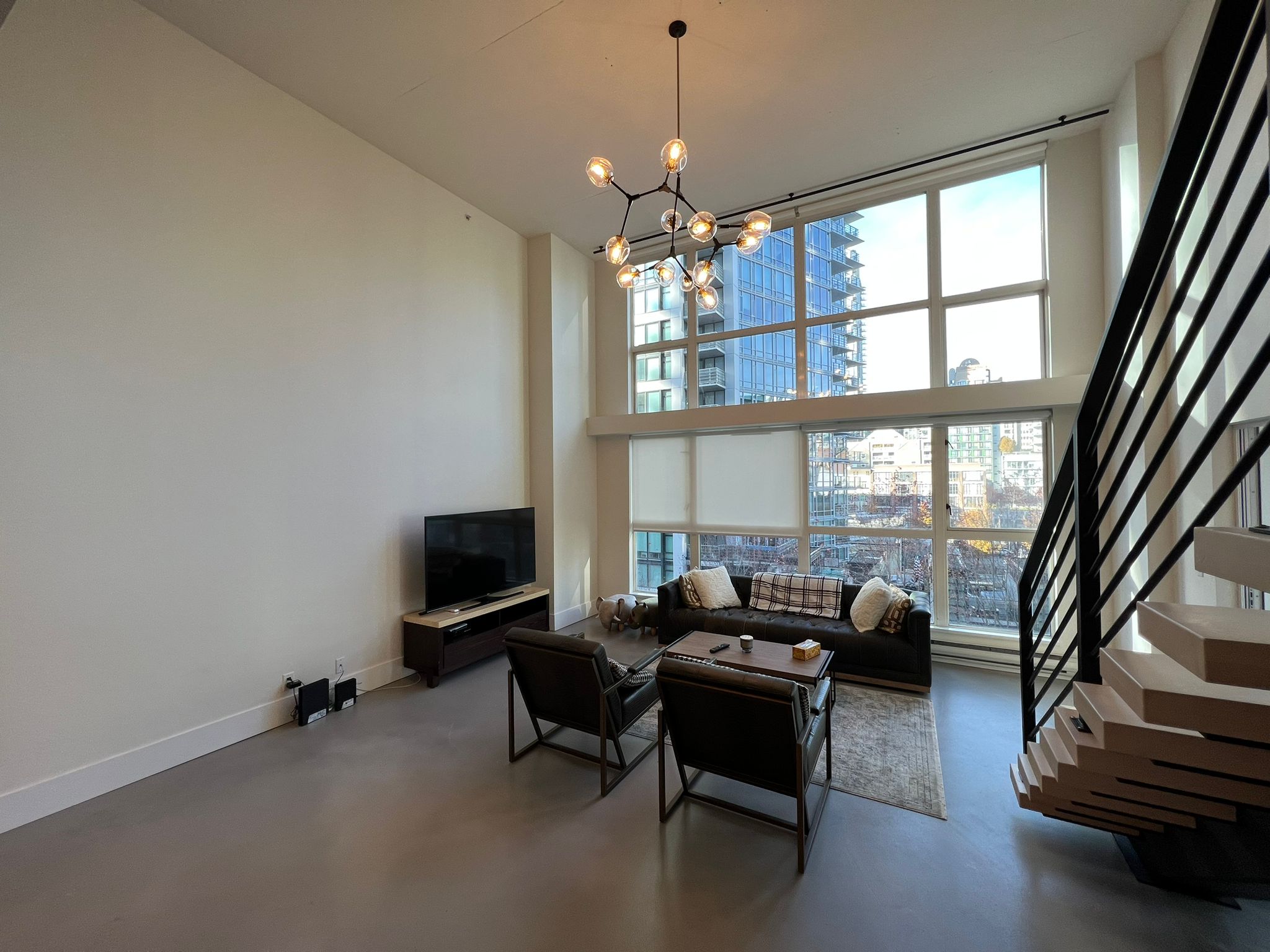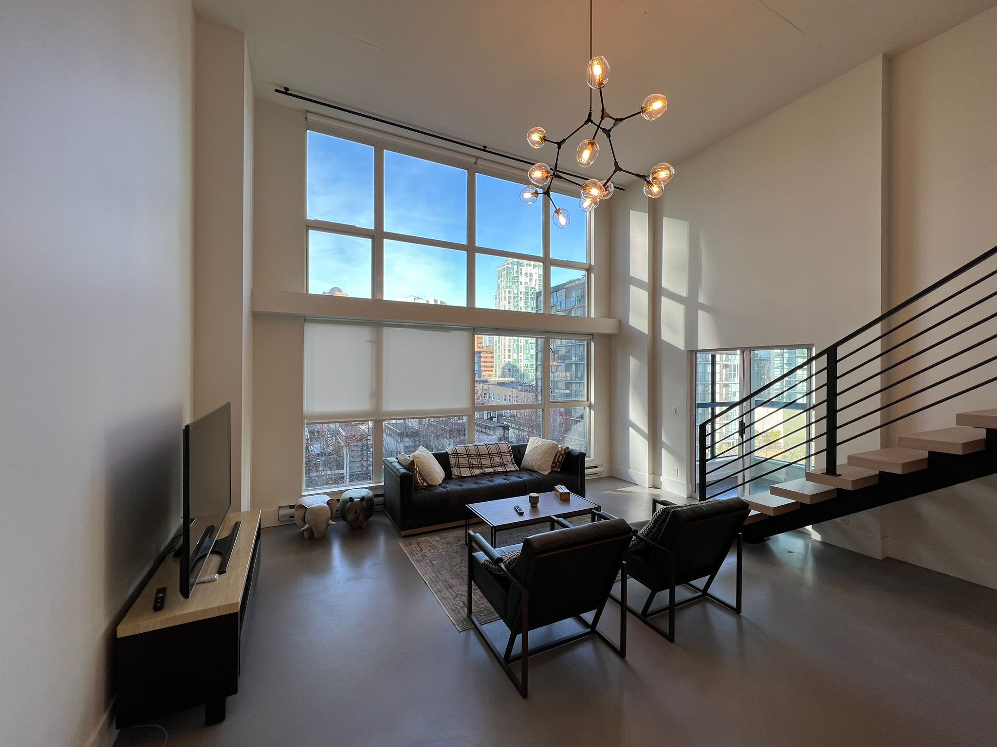 Welcome to Space! If you are looking for a one-of-a-kind loft rental in Yaletown then look no further! Our rare and contemporary unit is located steps away from the False Creek Seawall and David Lam Park and boasts 15'2" ceilings and 862 ft2 of elevated living space that would suit an array of contemporary lifestyles. This stunning double-height loft provides a functional plan allowing for a private sleeping area, private den, open plan kitchen with modern appliances and an updated bathroom. Thoughtful and elevated design elements like floor-to-ceiling windows that bathe the space in natural light, custom automatic blinds, concrete flooring and updates to the lighting and multiple fixtures make this a stylish place to call home. If the unit features weren't enough, the Space building is pet-friendly, has great amenities like a gym, two communal patios that permit BBQ's, workshop and is walking distance to the best shopping and dining in the city, Choices Market, Emery Barnes Park, Helmcken Park, Blenz Coffee, 10 minutes to the Seawall and Quayside Marina and the Yaletown-Roundhouse Skytrain station. If you are looking for a rental that celebrates all the buzz of downtown living then look no further!