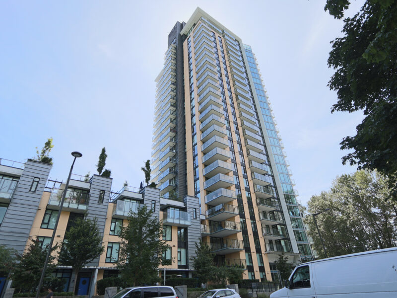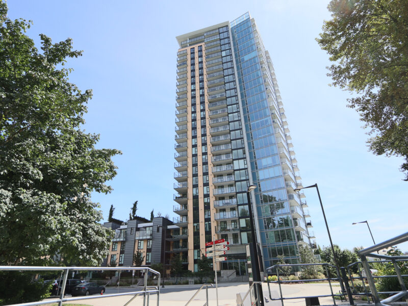 Welcome to Hunter at Lynn Creek. This stunning 1 bedroom + den, only three-year-old built condo is located at Hunter Lynn Creek, Intergulf's recent addition to the skyline in the newly emerging community in North Vancouver. BEAUTIFUL VIEWS OF CITY, BURRARD INLET & BRIDGE. This sun-soaked home offers an open layout with a grand kitchen, quartz counters, porcelain tile, backsplash in the kitchen and much more. Contemporary lighting and AIR CONDITIONING create an optimal comfort for daily living. Amenities include a gym, steam and sauna room, bike room, party room, playground and more! Come and see what the North Shore has to offer. If you are looking for a contemporary space, elevated function, and privacy, all while being in a prime location, then look no further.