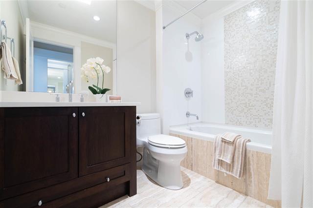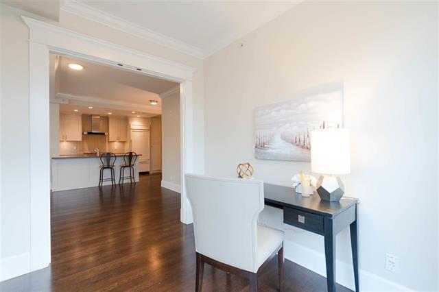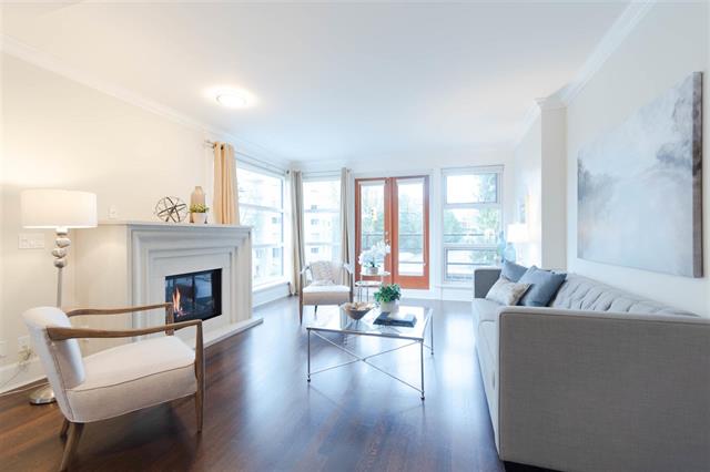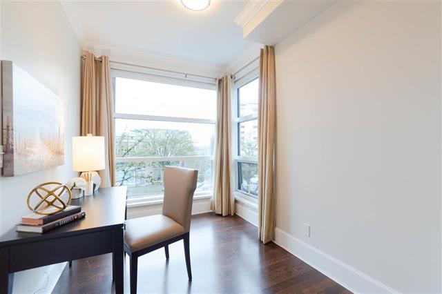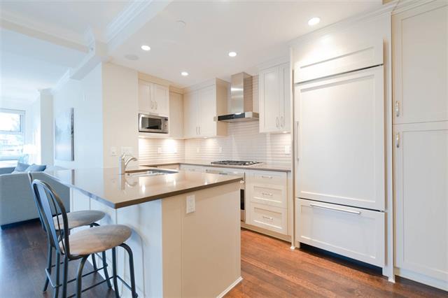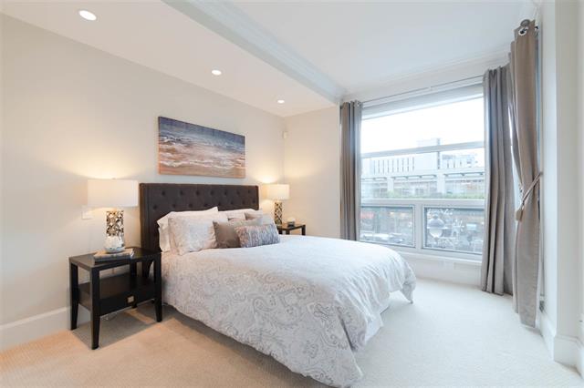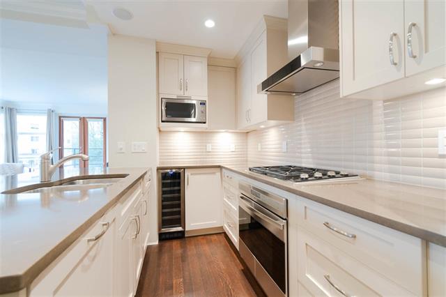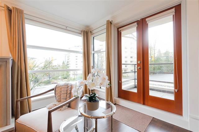 Come view this truly luxurious boutique building and the ONLY 3 bedroom plus den suite! Situated on the S/W corner and NOT on street level, this home offers optimal privacy as it does not share any walls. Walk into this impressive building with gorgeous inner open courtyard to front door of your own private home. There is a bright open floor plan for the living area, while the spacious bedrooms are more secluded offering greater privacy. Beautiful custom finishings, high ceilings with crown moldings, hardwood floors, radiant in floor heat, Suket gas fireplace, Wolf gas stove top (both included in rent), Subzero fridge, wine cooler and so much more. Across the street from Memorial Park. You are an easy stroll to the library, recreation centre, popular Seawall and a multitude of shops and restaurants.