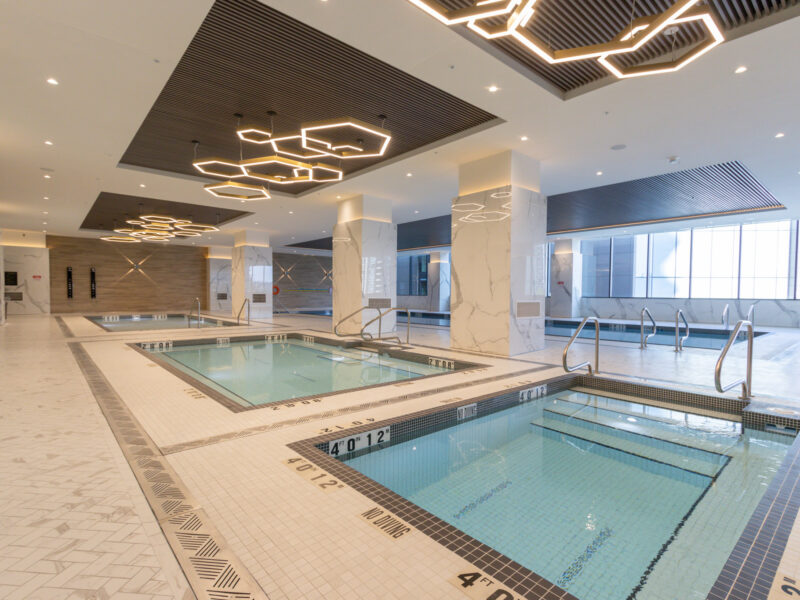 Residents enjoy exceptional amenities, including indoor and outdoor pools, fully equipped