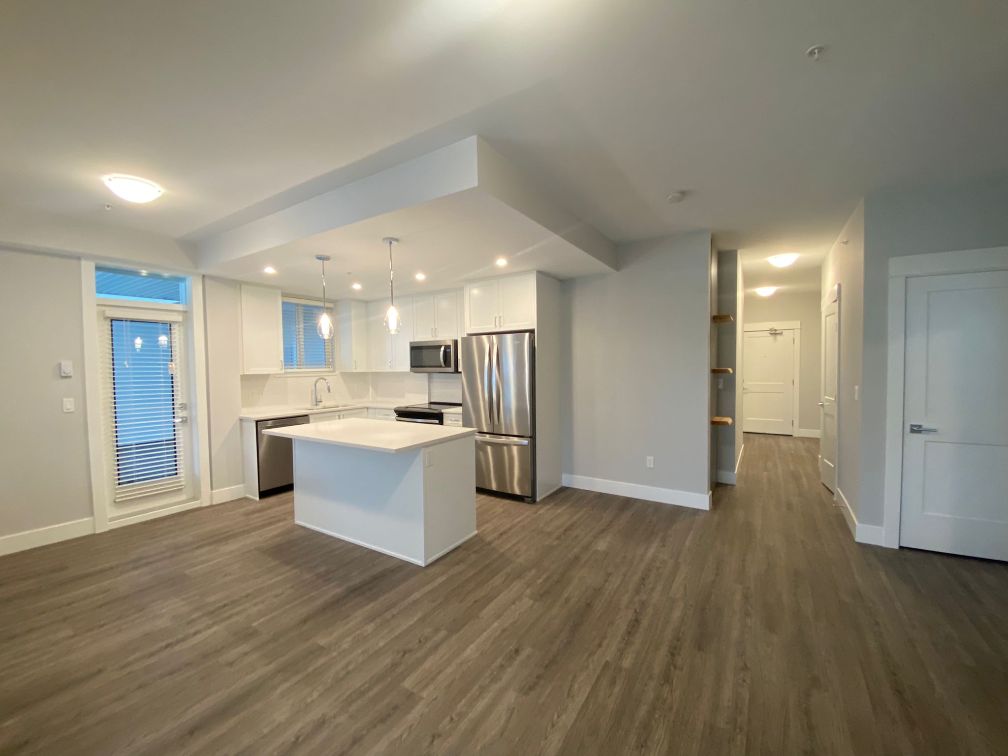 Welcome to The Montrose Square! The sense of place and lifestyle at Montrose Square is unparalleled. A master-planned, mixed-use development connected to the city’s brand-new recreation complex by a large pedestrian plaza where homes have been thoughtfully designed and carefully laid out. Our unit forms the spacious 'Living' portion of a live-work space where there is complete autonomy, private access and a concrete separation from the commercial space located below (that space will be a bakery and coffee shop so your mornings just got a little better). This rental boasts an expansive yet functional floor plan spanning 1058 ft2 with two large bedrooms located at opposite ends, an ensuite laundry room for extra storage, contemporary bathrooms with elevated finishings (including a master ensuite), an open plan living and dining area with a modern kitchen, stainless appliances and a kitchen island that ties the living, recreational and dining spaces together. Another 'wow' factor of this unit is the two parking spaces and access to ample deck space on two sides of the home which would be great during those spring and summer months or to enjoy the peaceful garden view of the Port Coquitlam Community Center. If a walkable lifestyle is on your list, Montrose Square is located steps away from, nature trails, shopping, restaurants, parks and schools, the Community Centre’s fitness facilities and pool plus the two-minute stroll from the West Coast Express makes for an easy, bridge-free commute to Vancouver. If you are looking for a rental that defines an elevated and convenient lifestyle in one of the more private and attractive areas of POCO then look no further!