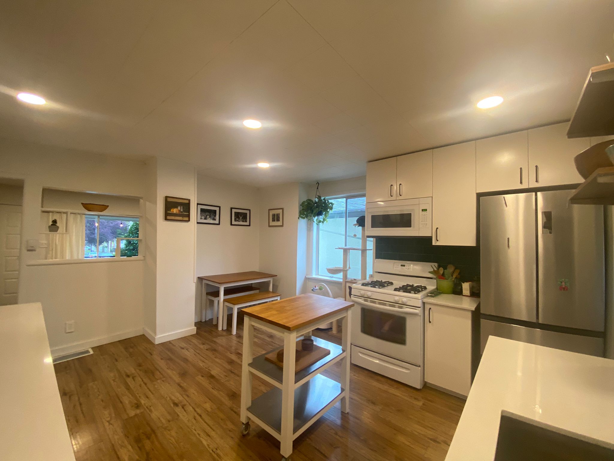 Cozy meets contemporary in this rare, charming, all-inclusive, furnished rental located in the desirable Cedar Cottage neighbourhood. Placed at the end of a quiet cul-de-sac this rental provides 1438 sq. ft of well-planned, split-level space utilizing contemporary finishing, eclectic and tasteful furnishing, modern appliances and a number of bells and whistles that would make this a cross between an entertainers dream or the ideal relaxation zone for family and close friends. This one-of-a-kind rental combines a functional floor plan, separate living and entertaining sections and the convenience of a sought-after Vancouver neighbourhood. There is no detail that has been overlooked, such as the privacy from the hedges that surround the home, a large front deck, well-appointed bedrooms, the valuable separation between living, dining, working and recreational spaces, ample windows that bathe each corner of the home in natural light and of course the TWO FULL KITCHENS are a rare gem and added bonus. There is a large amount of usable outdoor space that comes equipped with an upper deck, a raised lower deck, hot tub, finished shed, garden patch and a large fenced backyard that would be perfect for your furry friends. Lastly, we aim to provide the efficiency of a single bill with all your hard and soft furnishings, utilities and gardening included in your rent so if you are looking for design, entertaining space, convenience, comfort and the pleasure of a private and family-friendly location then look no further!